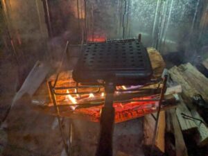 ちょっと写真ではわかりにくいのですが、焼き網までの高さがあるので、薪の継ぎ足しも容易にできます。