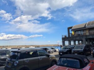 魚市場の駐車場は車の区画はほぼ満車だったのですが、裏手にバイクを停められるスペースがありました。