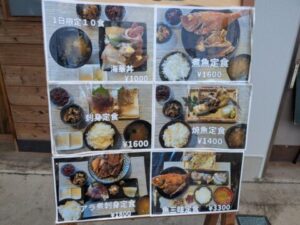 焼魚定食1400円、まご茶漬けセットが1500円など、海の幸をふんだんに使ったランチがリーズナブルな価格で並びます。