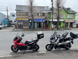 私たちはバイクで行ったので、片側2車線の前面道路の向かい側の端に停めました。